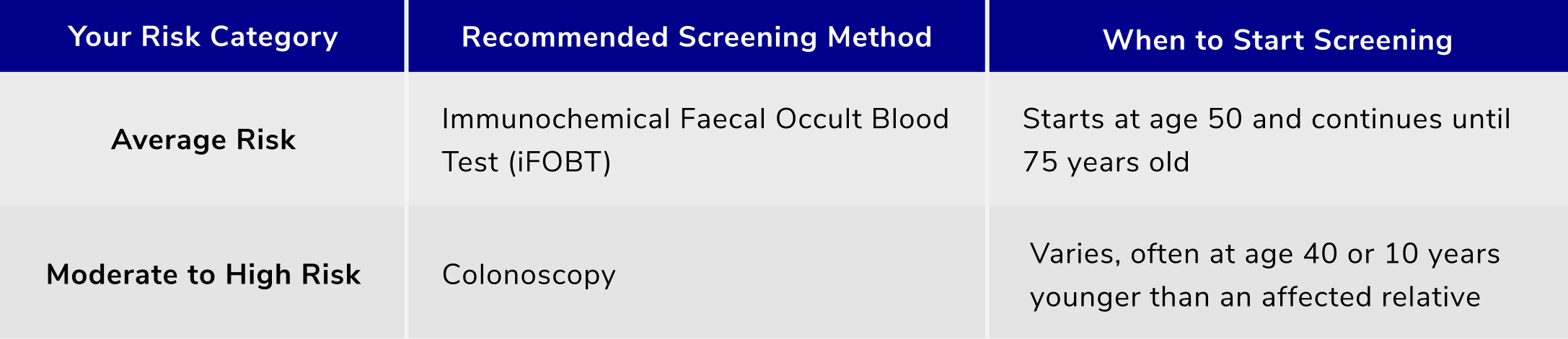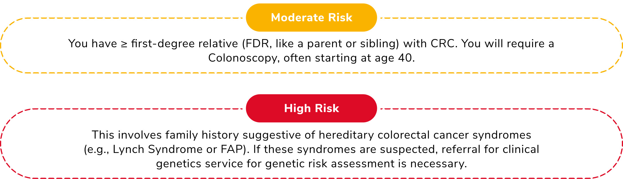 If you have a history of CRC in your family, you may be automatically moved into the moderate or high-risk category, mandating an early Colonoscopy.